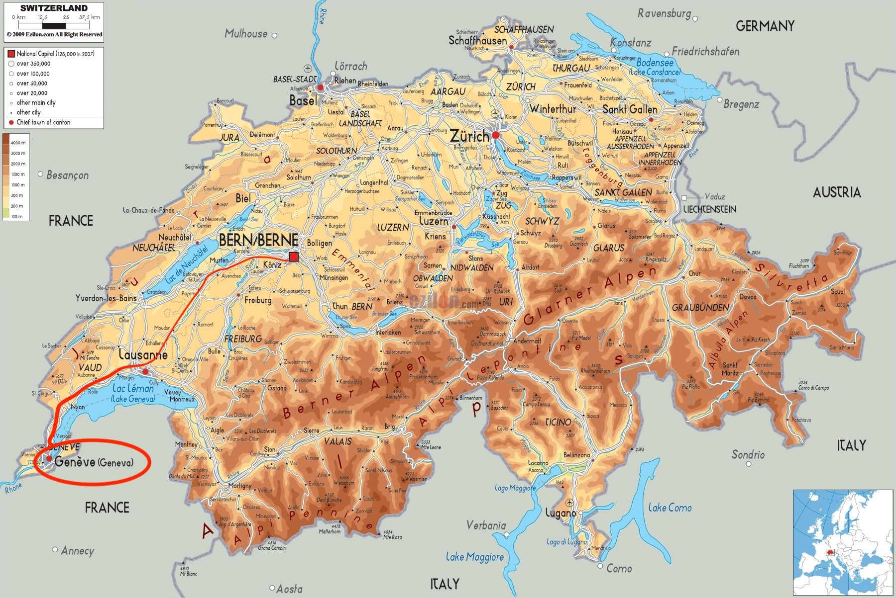 Lake Geneva is beautiful, and has a nice build up of slowly taller mountains as you leave geneva towards the Alps.