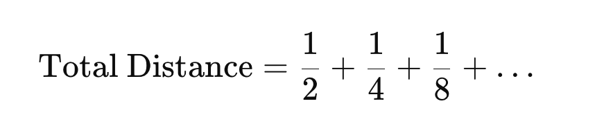 It is assumed he will get half as close, and then half as close as that, on and on into infinitely small halves.