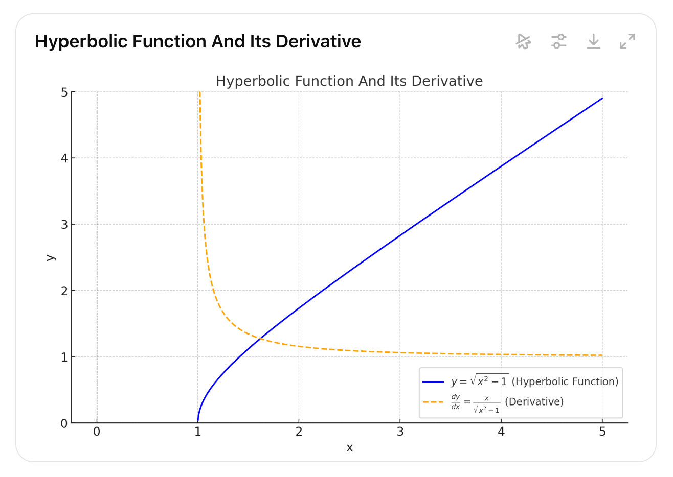 To show this, lets take the derivative of the hyperbolic and plot it: