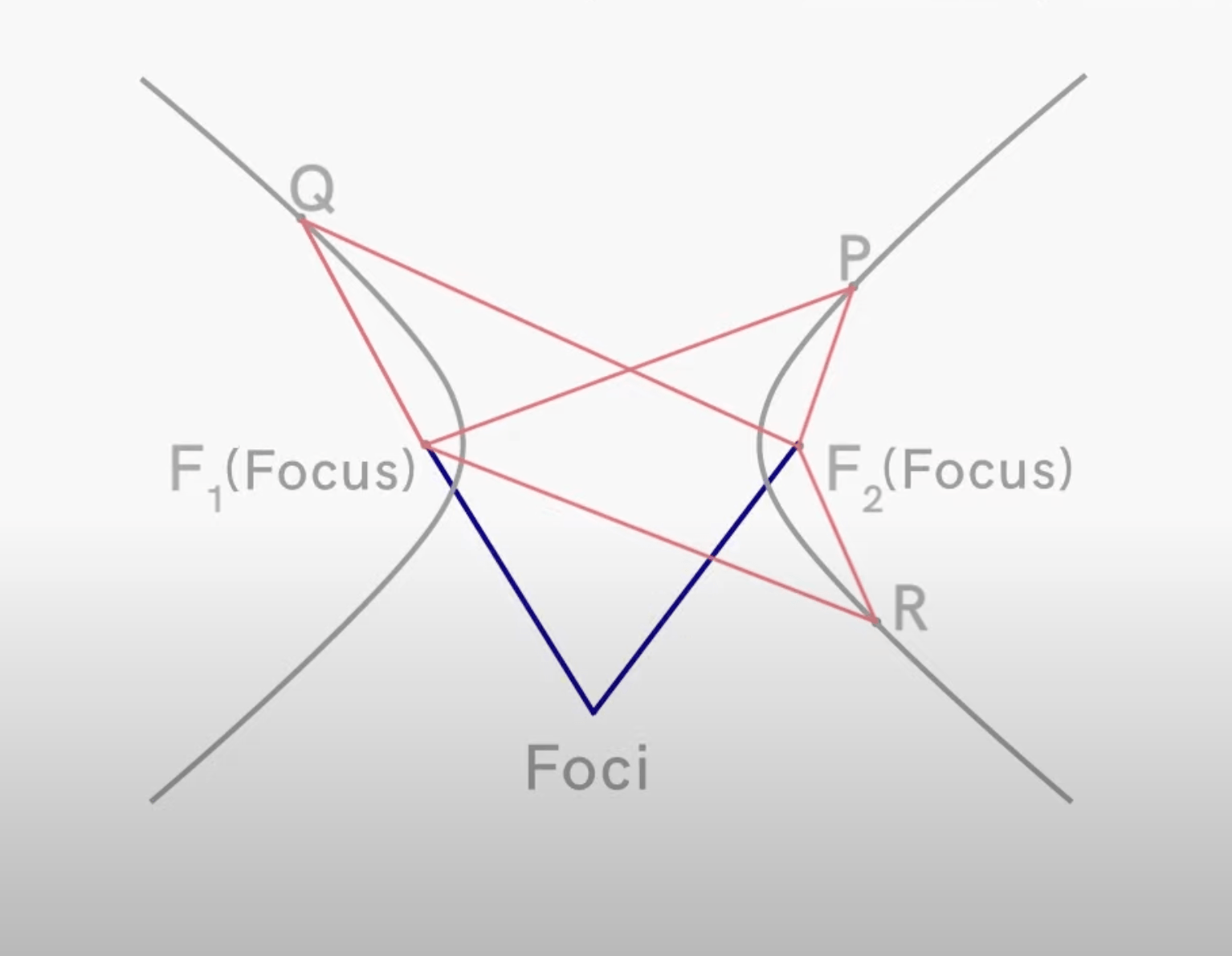 To create a hyperbola, first place 2 points. Then consider a point, and subtract its distance to the further point from the distance to the nearer point. this difference can be called α.
