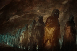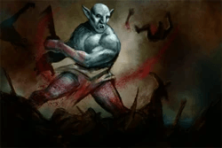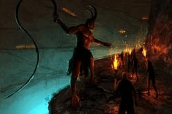 Fires light it’s crooked towers, forming a sprawling metropolis of pain and misery.