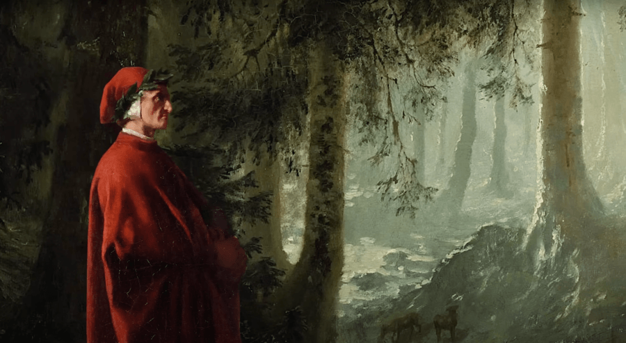 In the forest, he meets the ghost of Virgil, the ancient Roman poet, one of Dante’s greatest inspirations. Virgil was sent by Beatrice, Dantes departed wife who has been watching over him from heaven. Concerned about Dante’s soul, she sent Virgil to guide him to paradise - and back to her.