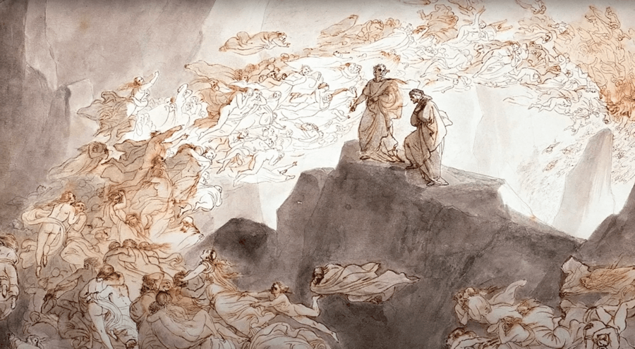 Now it is time for the actual punishments to begin! We begin with the adulterers, forever blown about and buffeted by violent relentless winds.