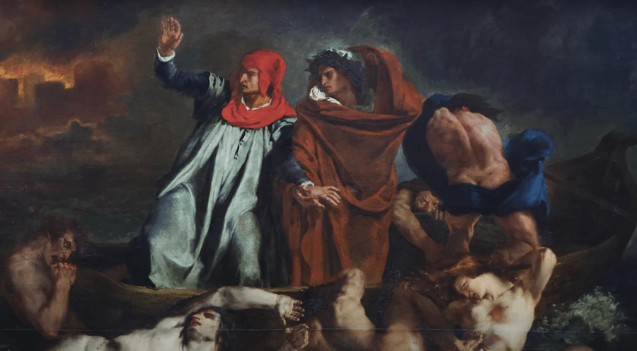The pair arrive now at the banks of The River Styx, the same river from greek myth used to cross over into Hades. Dante plucks it and inserts it into this hell.