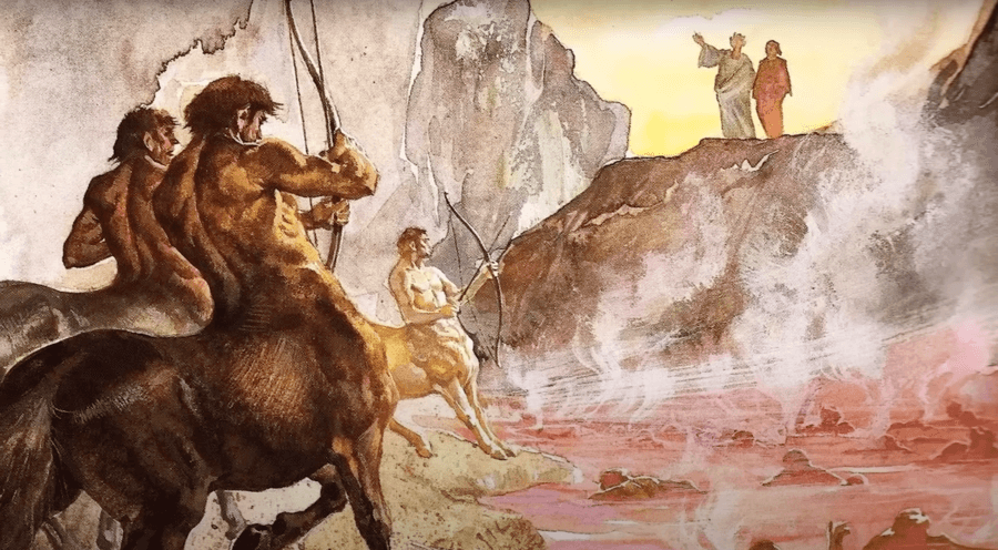 Those that harmed other people are submerged in a boiling lake of blood. The shores are patrolled by demonic centaurs with bows and arrows, ready to unleash fury upon anyone who tries to emerge from the surface. The depth they sink is determined by how violent they were. Alexander the Great is apparently in here.