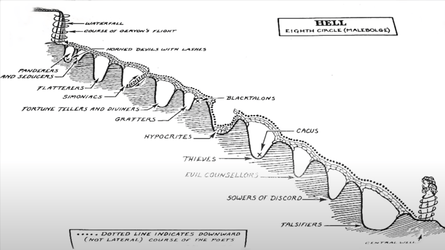 They arrive at the Malebolges - which when translated means the “evil ditches”.