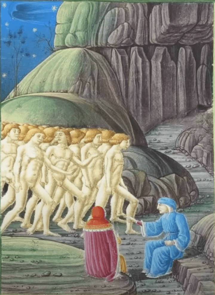 Here Dante meets a surprising figure - Pope Adrian V. He’s making a commentary here on the wealth accumulated by religious figures of his time.