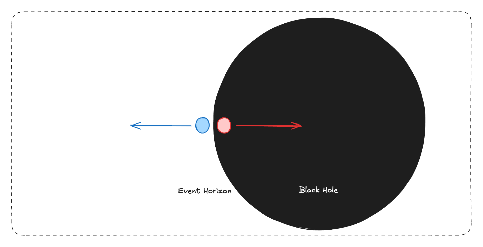 If one of these matter-antimatter virtual particle pairs happens to form exactly on the event horizon of a black hole, one of the virtual particles will get trapped beneath the horizon while the other will escape to the universe.