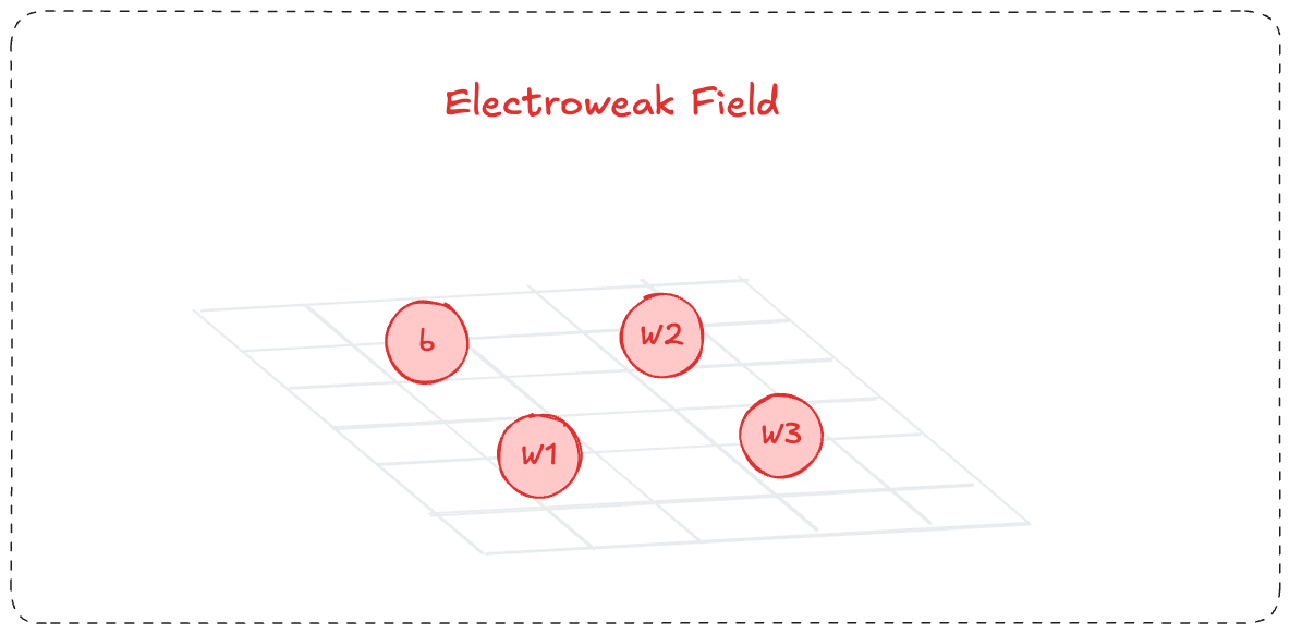 Firstly, we start with the Electroweak Field - assumed to have four massless bosons - b, W1, W2, W3.