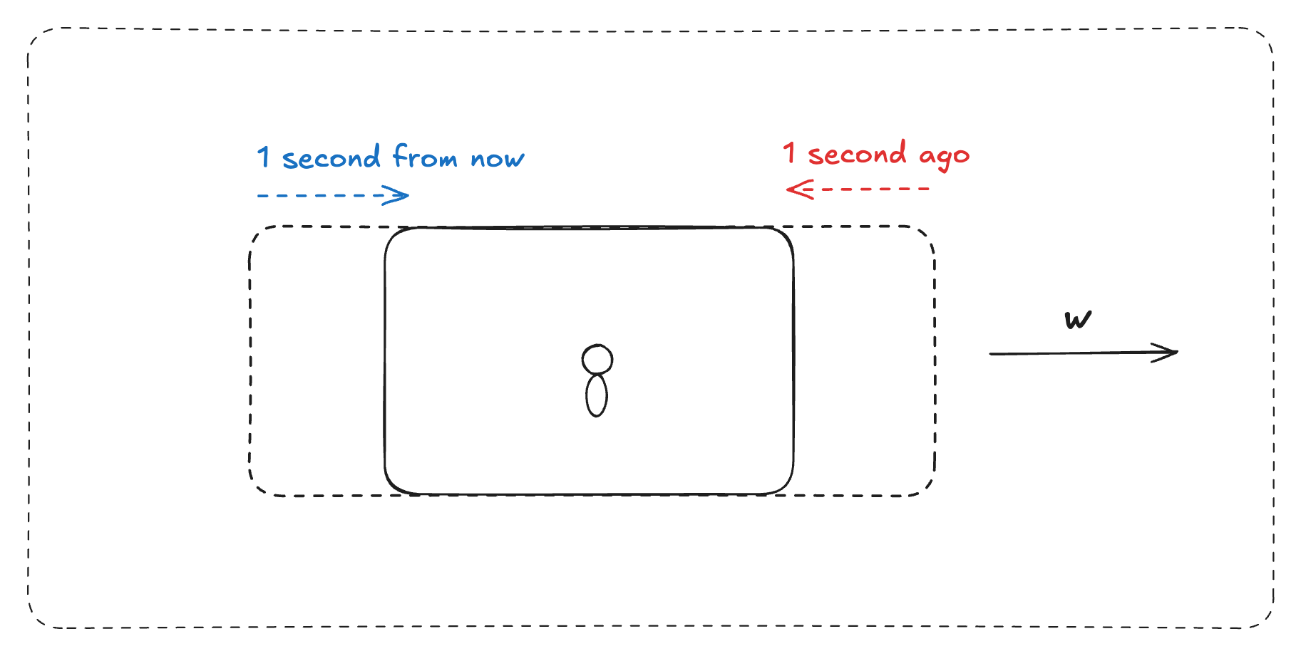 Think about where the front would have been 1 second ago, and where the back would be one second in the future.