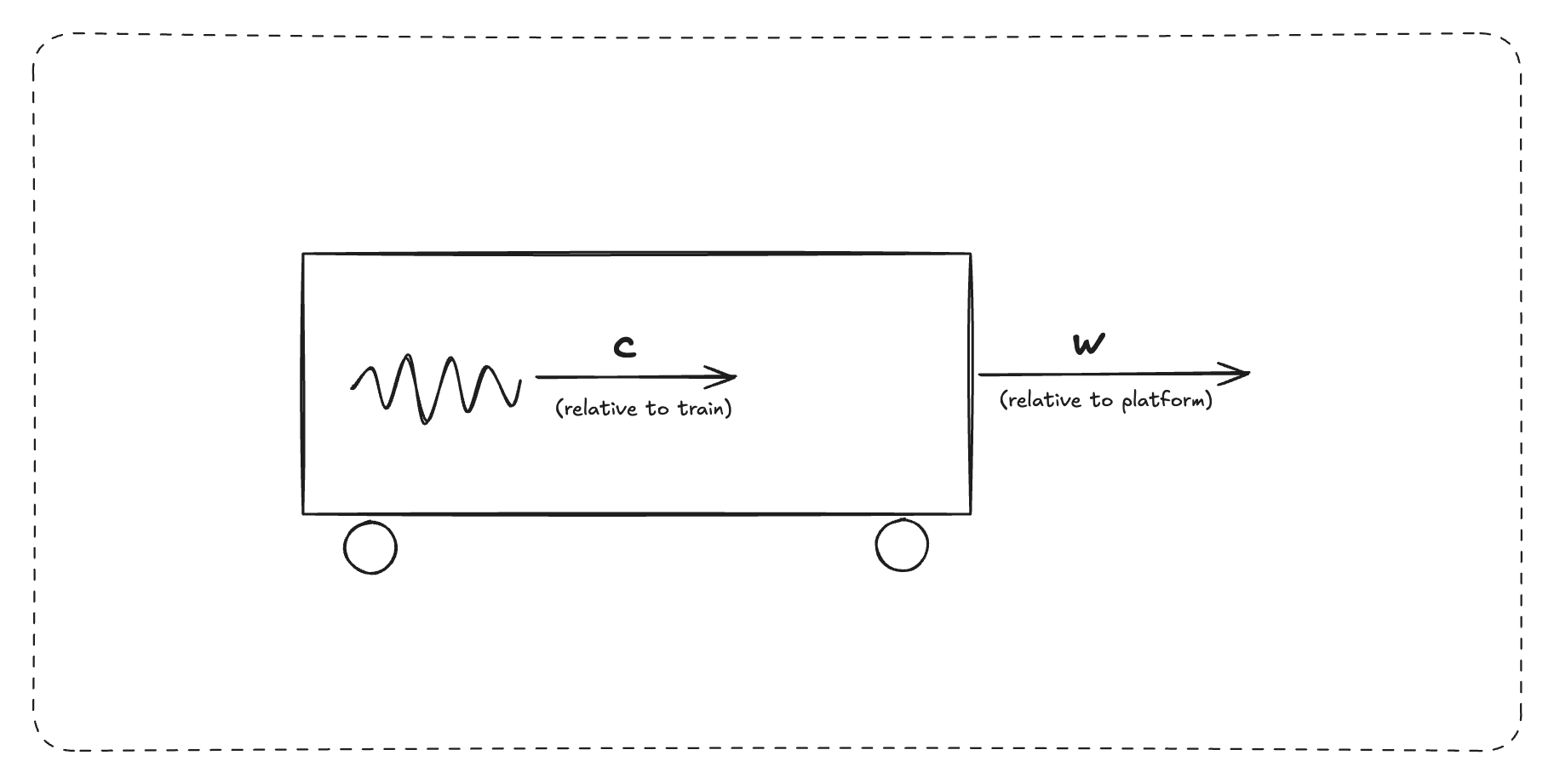 Lets do the same experiment, now with light inside of the train. If we measure the speed of light inside the train, it is c.
