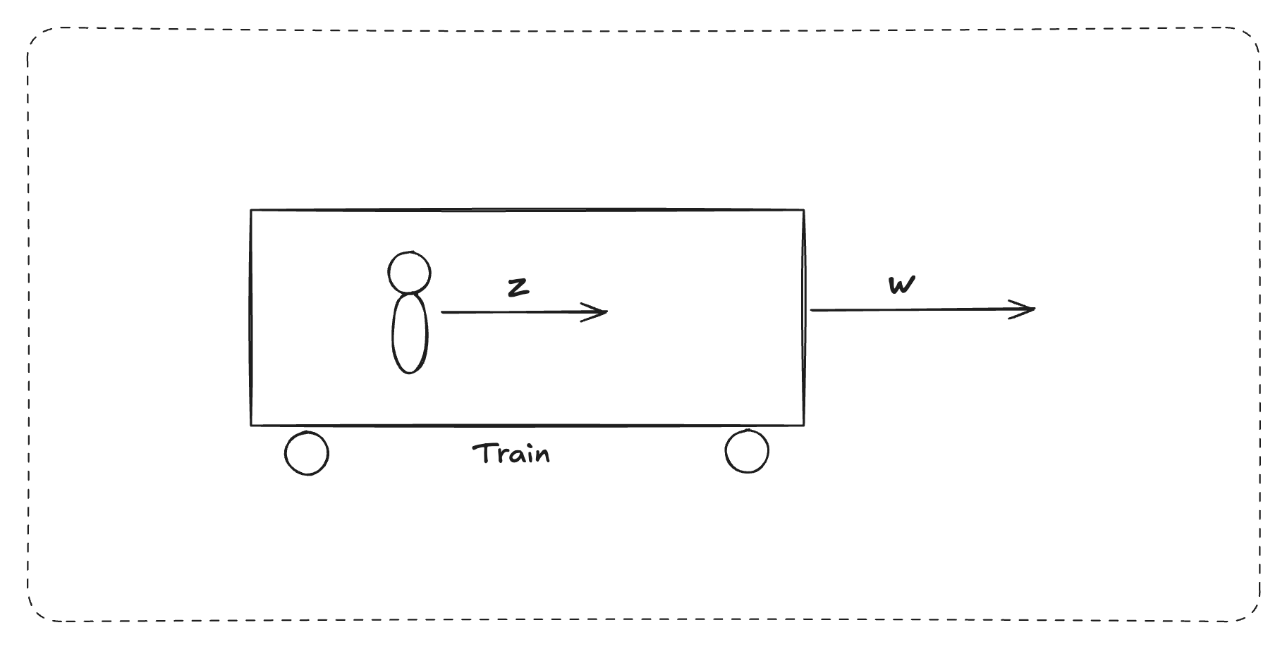 Let suppose now that you are walking through the train at velocity z while the train travels at velocity w.