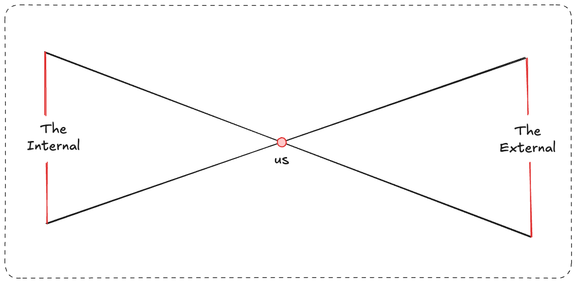“You”, the experiencer, are the current state of the entire system at it’s fulcrum. The point at the center of inward and outward.