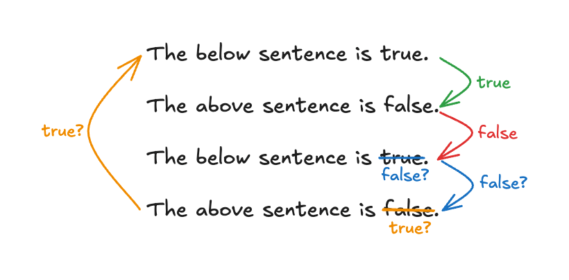 Lets revisit the paradox above and see that all it’s doing is going in an endless loop. The first sentence references the second, which then references the first, which references the second, and so on - into infinity.