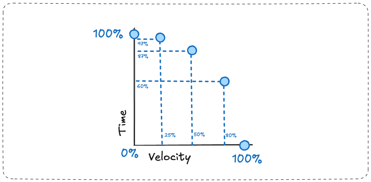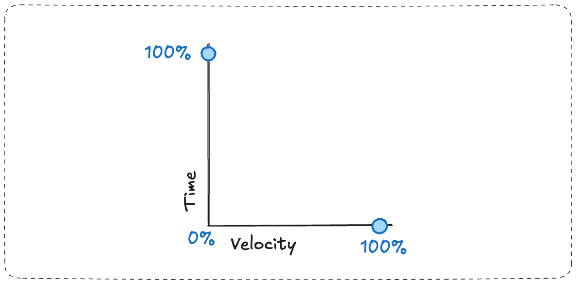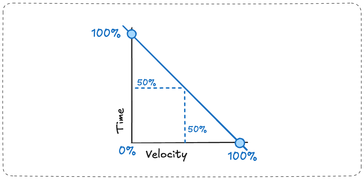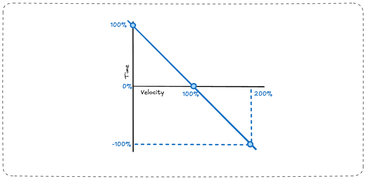 -100% on the velocity axis just means moving in the opposite direction in space. This graph is only accounting for 1 dimension of space. So instead of moving right, negative velocity is moving left. Reality has 3 dimensions of space, all of them have this same relationship with time.