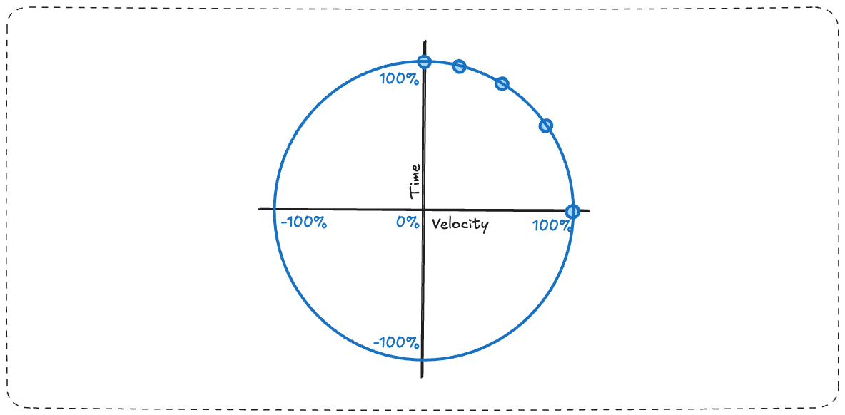 For example, imagine the circle becoming warped and squashed so now moving 10% the speed of light through space results in 0% time.