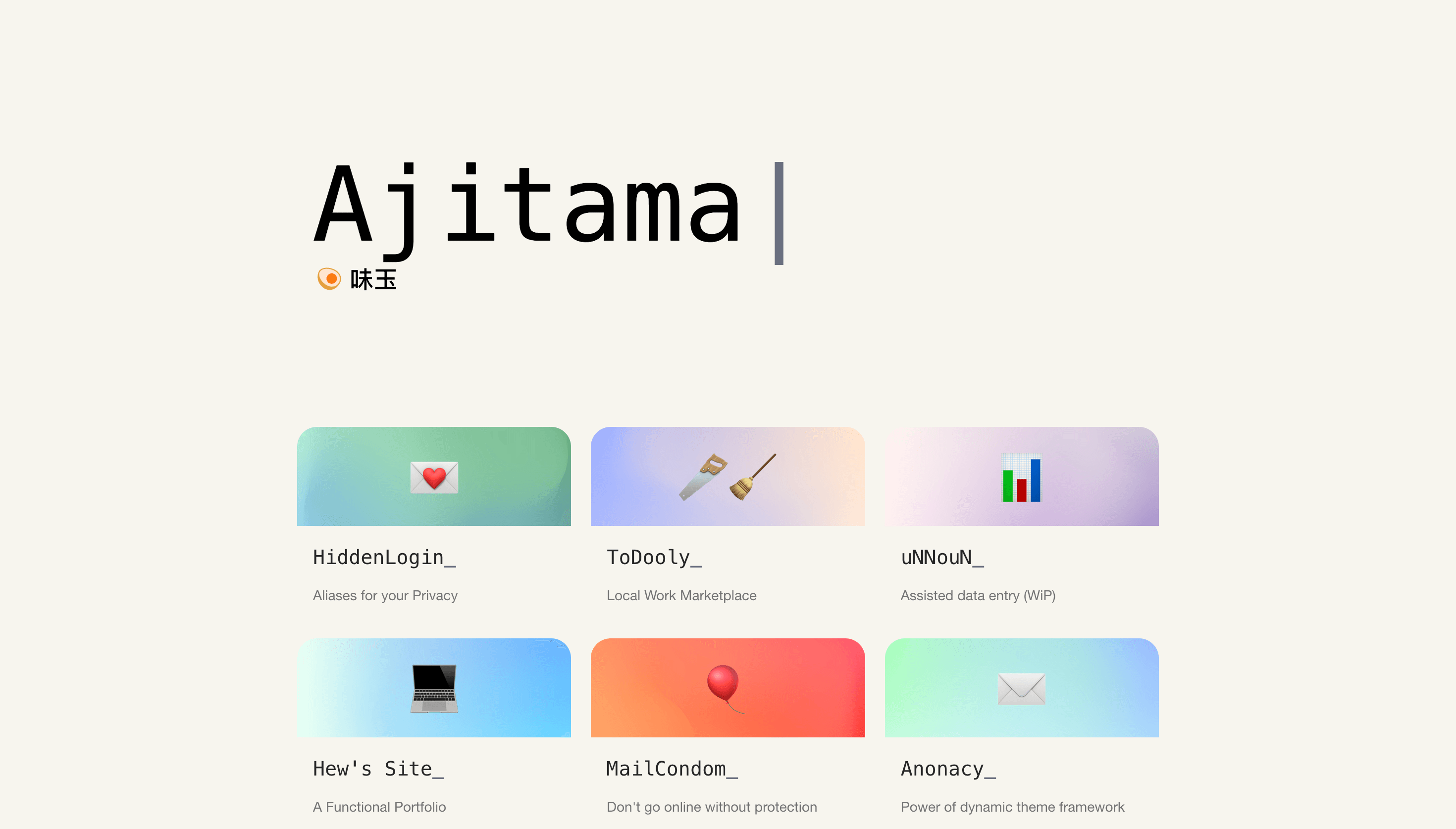 My second portfolio site was a brief name change as well - ajitama. I was searching for a good developer name that wasn’t just some combination of my legal name.
